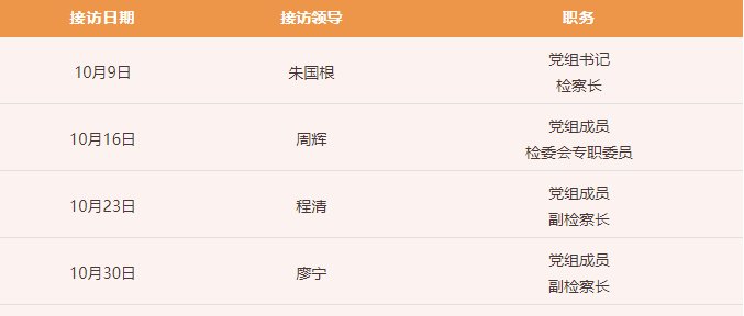 【控申检察为民办实事】东湖区检察院“检察长接访日”10月接访安排公告