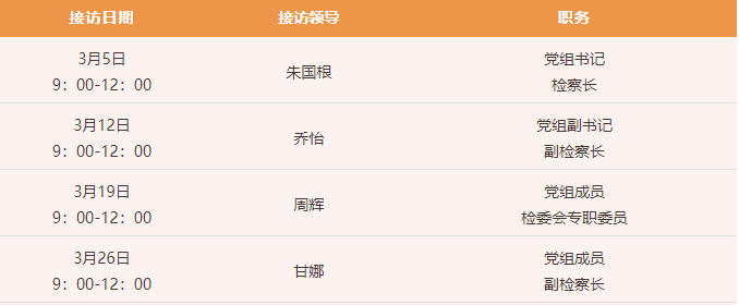 为深入贯彻习近平法治思想,践行新时代检察机关以人民为中心的发展思想,进一步密切检察机关同人民群众的联系,提升12309检察服务中心服务质效,扎实做好检察长接访工作,推动案结事了人和,我院坚持开展12309检察服务中心“检察长接访日”活动,现将本院“检察长接访日”3月接访安排公告如下: