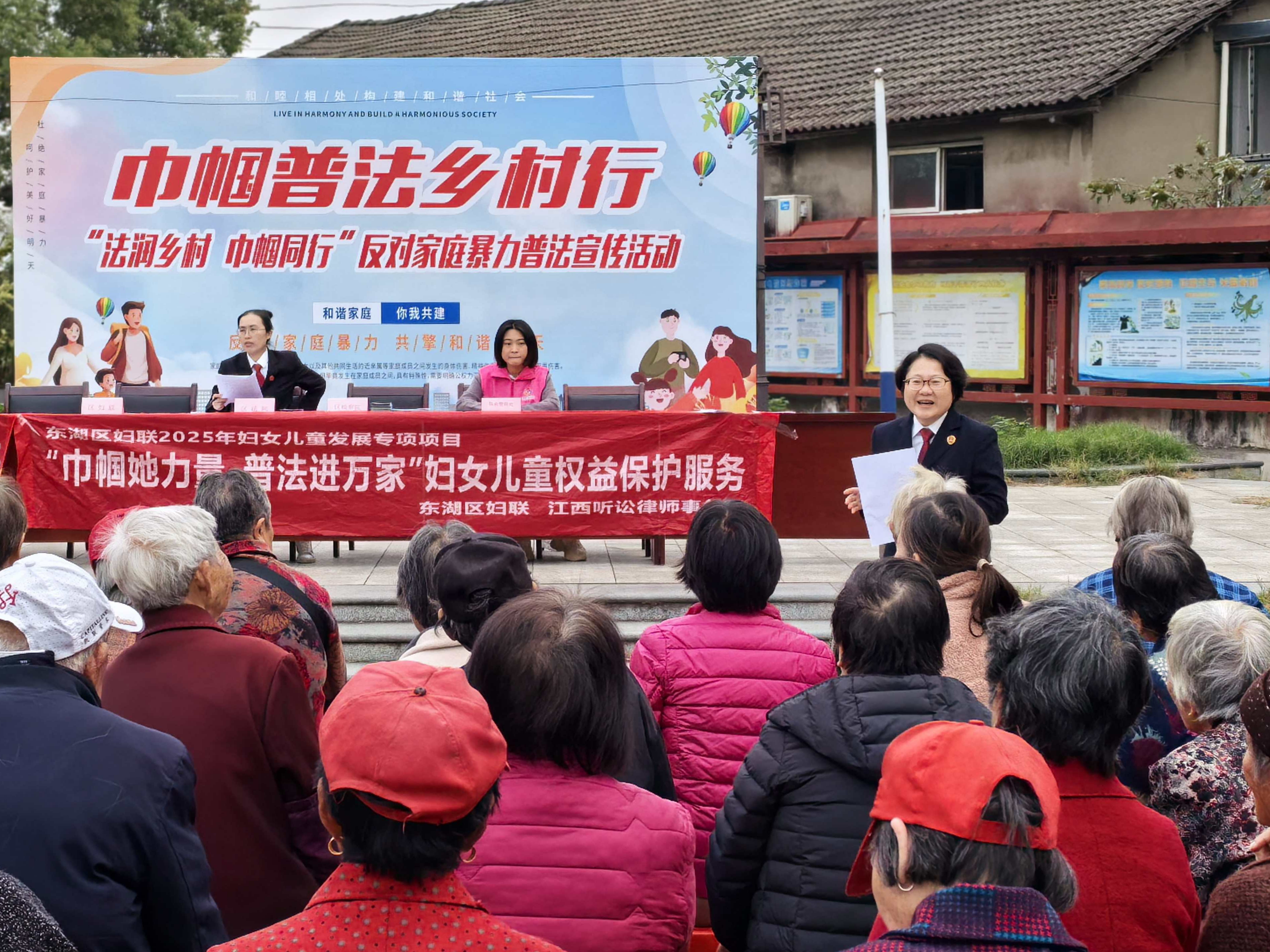 为弘扬社会主义法治精神,保护广大妇女群众的身心健康,提升乡村妇女儿童、老年人法治意识和依法维权能力。11月5日,东湖区人民检察院联合区妇联、区法院、区妇计中心、扬农管理处、江西听讼律师事务所开展巾帼普法乡村行——“法润乡村 巾帼同行”反对家庭暴力普法宣传活动。