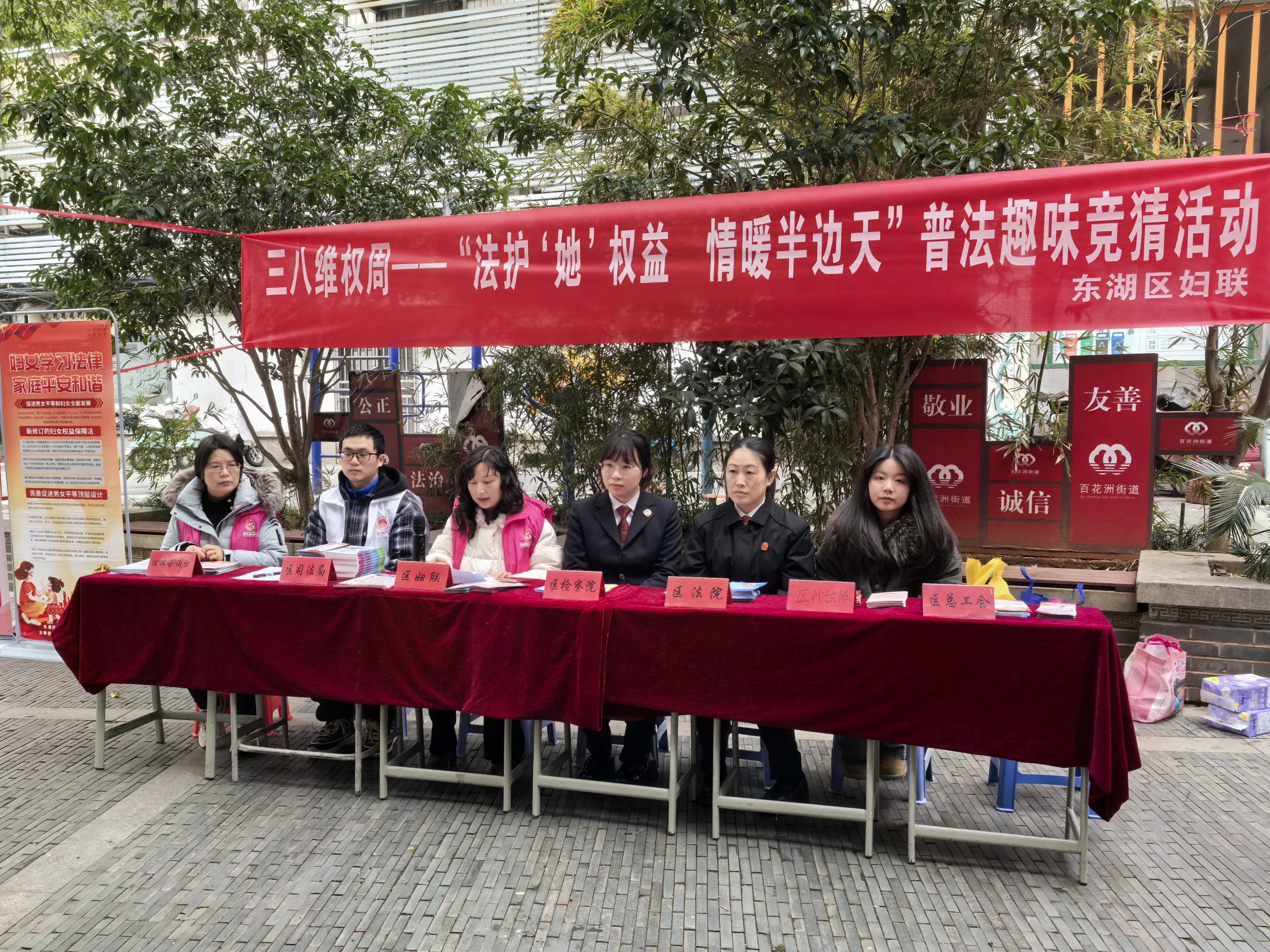 春风送暖,法护芳华。在第116个“三八”国际妇女节来临之际,切实维护妇女儿童合法权益,满足妇女群众法治需求,2025年3月5日,东湖区人民检察院联合区妇联、区法院等单位共同开展“法护‘她’权益 情暖半边天”普法宣传活动,为广大妇女群众送上一份有温度、有力度的法治护航礼包。